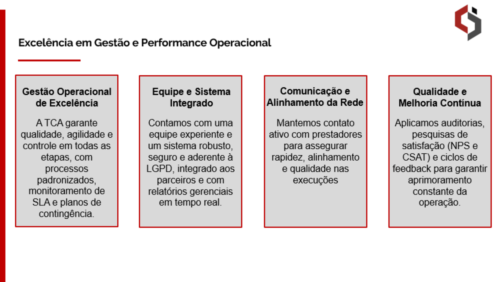 • A TCA é formada por profissionais experientes, com ampla vivência no mercado de assistência técnica e foco em eficiência, tecnologia e resultado.